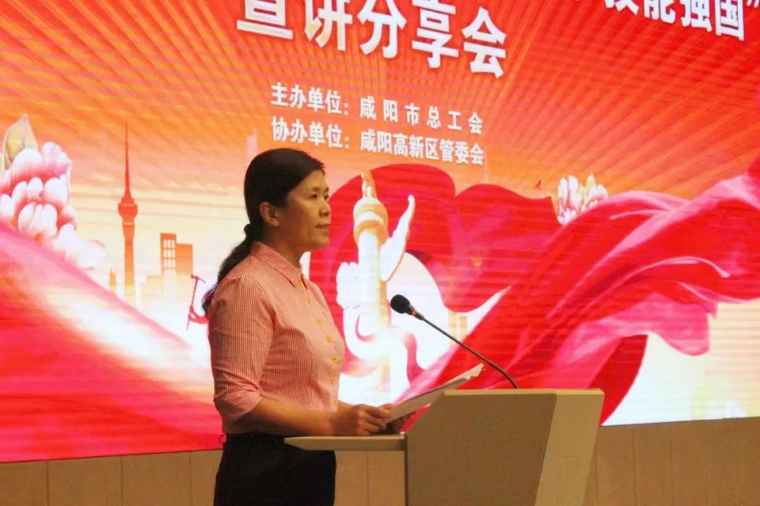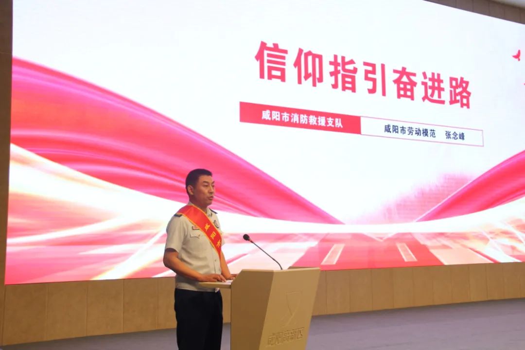 宣講會上,全國勞模、中國紡織大工匠、趙夢桃小組組長何菲,全國五一勞動獎章、全國技術能手、三秦工匠、陜建十一建集團設備安裝公司技術質量管理崗沈龍慶,市級勞模、中國石油長慶石化公司運行四部四班副班長劉肱臣,全國應急管理系統先進工作者、市級勞模、咸陽市消防救援支隊光明路特勤站一級消防長張念峰4位宣講團成員結合各自工作崗位,用真實的故事、樸實的語言分享了“沾棉絮、帶汗珠、冒熱氣、接地氣” 的感人事跡,彰顯了新時代“愛崗敬業、產業報國、技能強國”的勞模工匠精神,為與會者奉獻了一場精彩人生的精神盛宴。