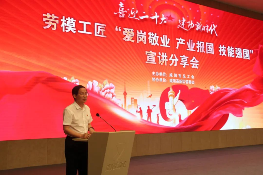 7月26日,咸陽市總工會舉辦勞模工匠“愛崗敬業、產業報國、技能強國”宣講分享會。市人大常委會副主任、市總黨組書記、主席田一泓出席活動并講話。
